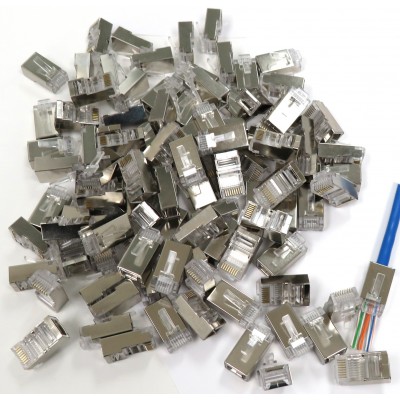 (8 Pins) RJ45 Metal Shielded Pass Through plug for CAT6 cable100-Pack, *SOLD AS PACK OF 100*